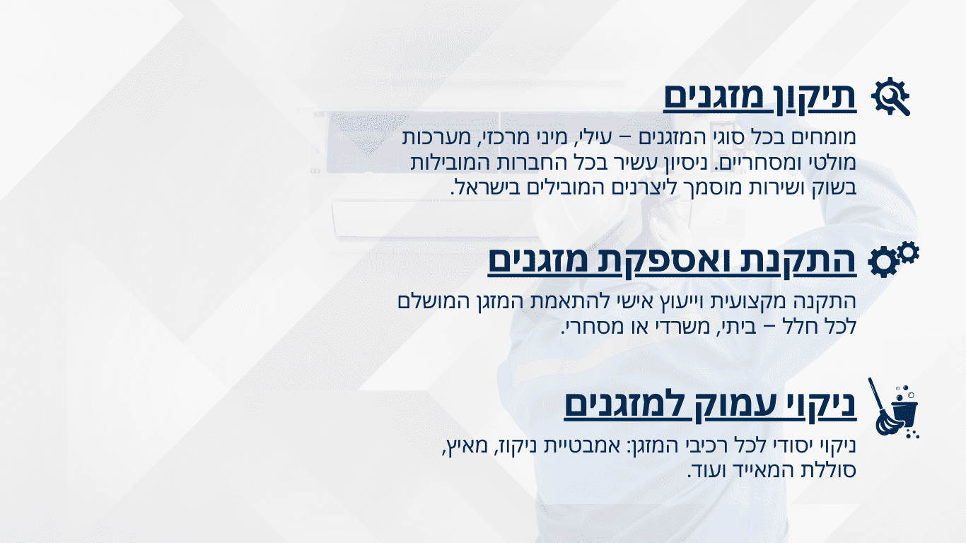 שירות מקצועי לכל סוגי המזגנים עם אחריות מלאה ויחס אישי